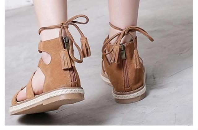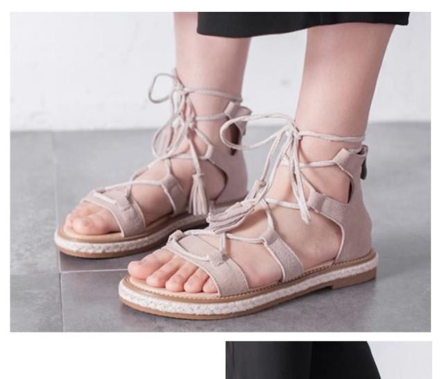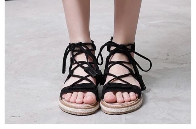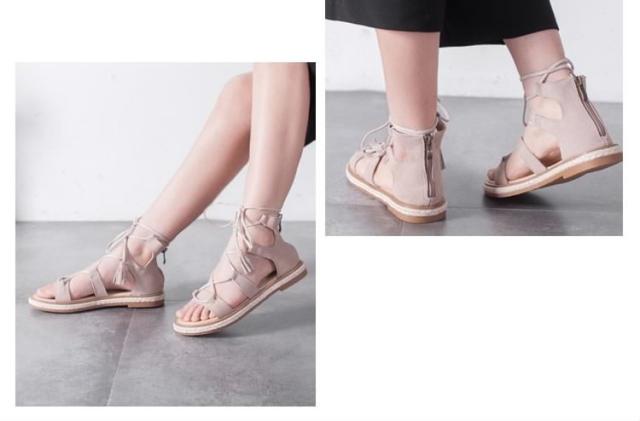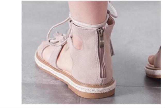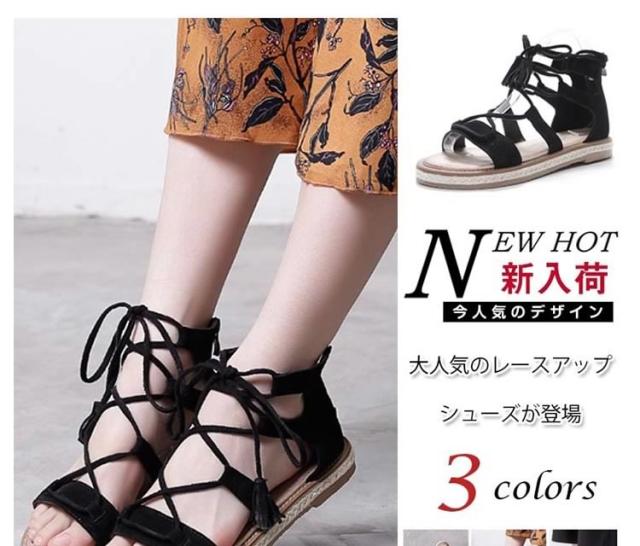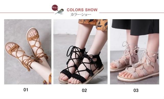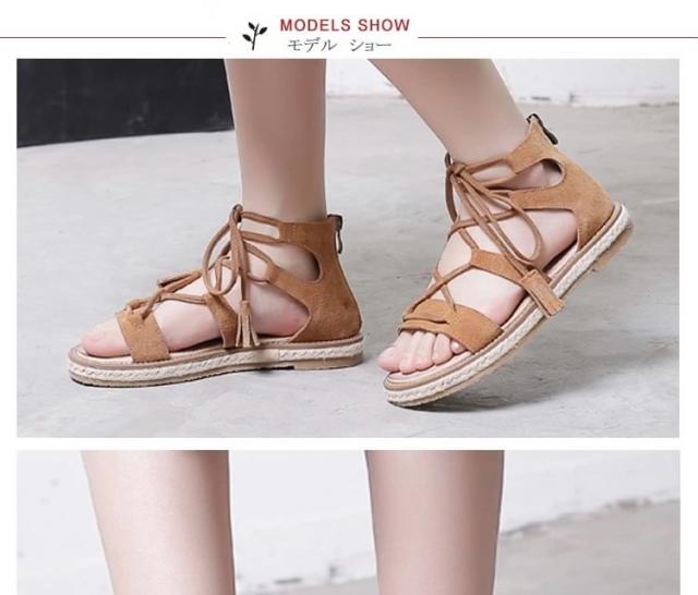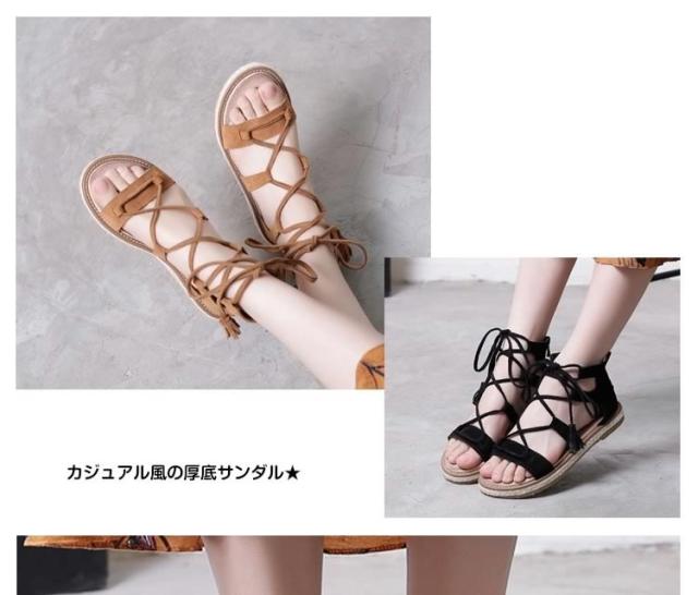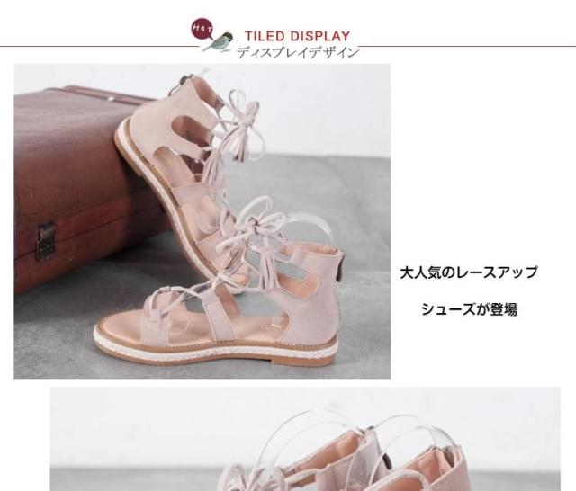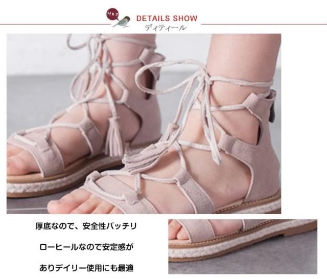 サンダル/レースアップシューズ/ローマ靴/ローヒール/厚底/PUレザー/無地/ファスナー