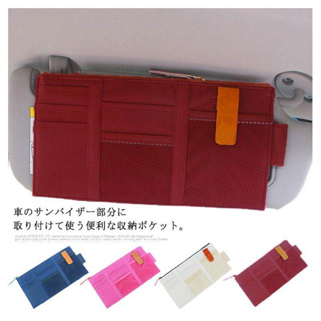 | 車のサンバイザー部分に取り付けて使う便利な収納ポケット。 全面のポケット6個にはカードやチケットなどが収納できます。 大口のファスナーポケットにはスマホや化粧品などの小物も入れられます。 サイドにはボールペンなどをいれられるホルダーもあります。 取り付けも簡単で車内の便利グッズです。 | |