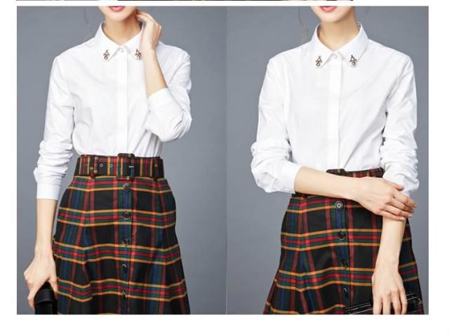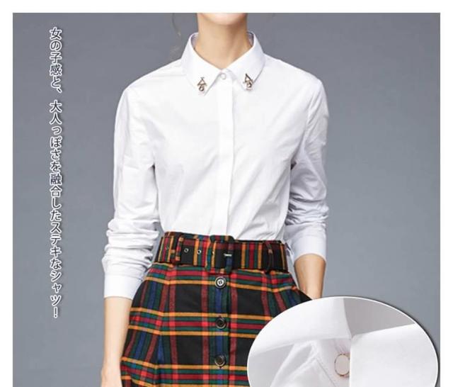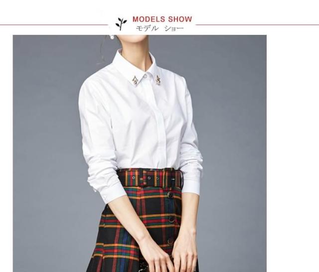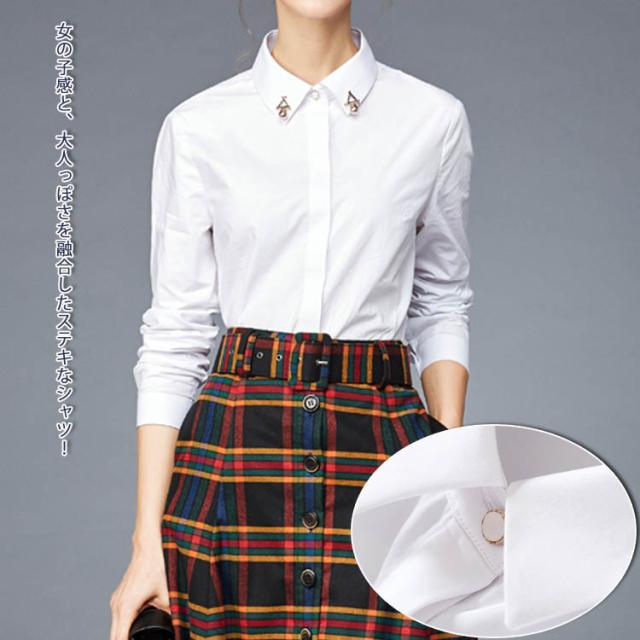 ホワイトシャツ レディース 長袖シャツ ポロ衿シャツ 春秋シャツ ワイシャツ 通勤シャツ スリムシャツ オフィススタイル Yシャツ 2017春新作