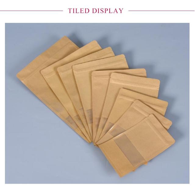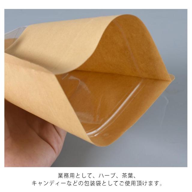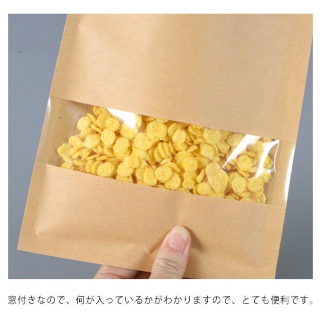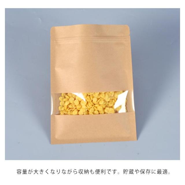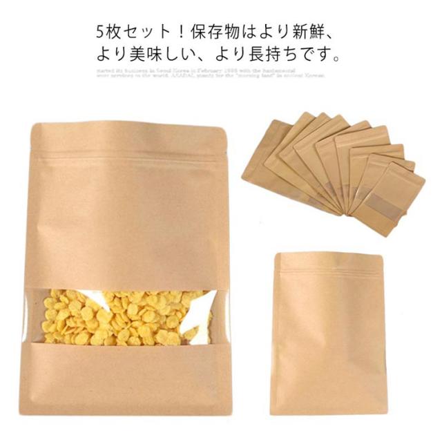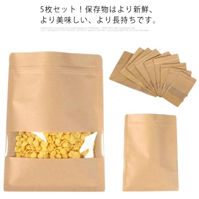 食品収納袋 密閉袋 自立袋 クラフト紙袋 角底袋 窓付き ジップ付き 保管袋 耐油 お菓子収納 キッチン収納 ラッピング 保存ポーチ 5枚入り 防湿