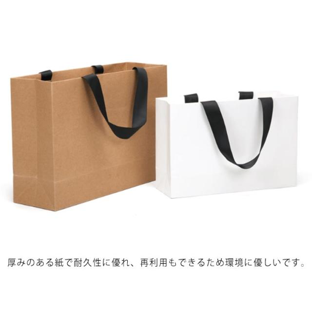 | シンプルなデザインでちょっとした贈答に最適なペーパーバッグ。 厚みのある紙で耐久性に優れ、再利用もできるため環境に優しいです。 マチ付きなので、衣類や雑貨などたっぷり入れられます! ラッピングや梱包、イベントでのお渡し用に手さげ袋としてお使いいただけます。 | |
