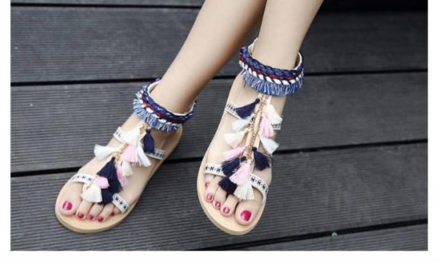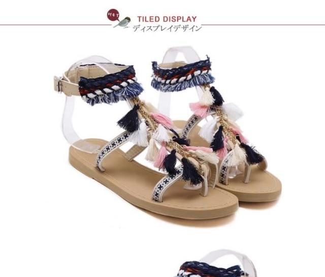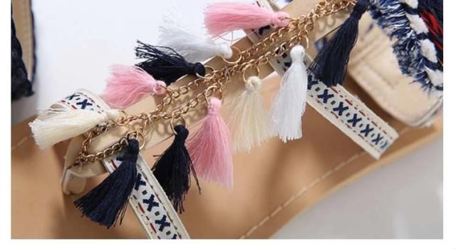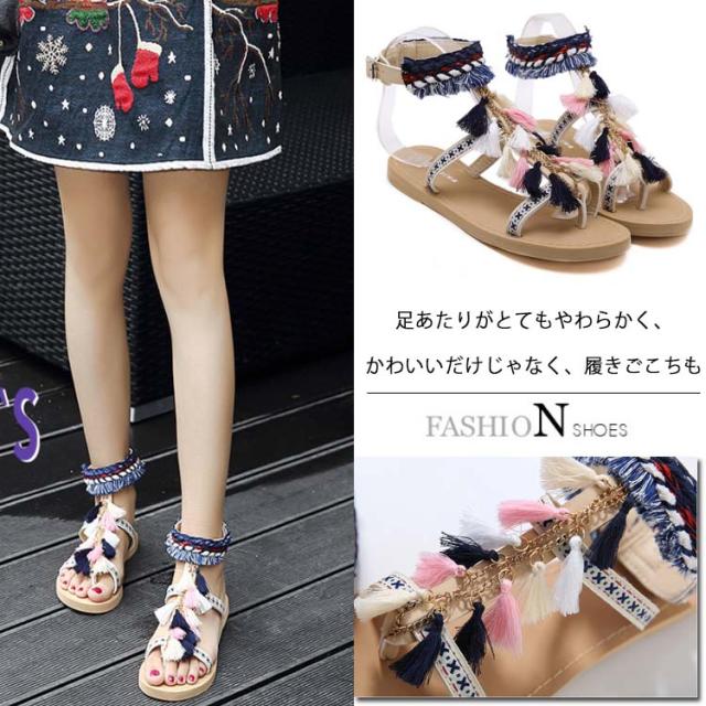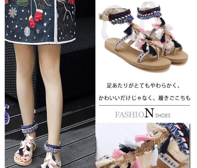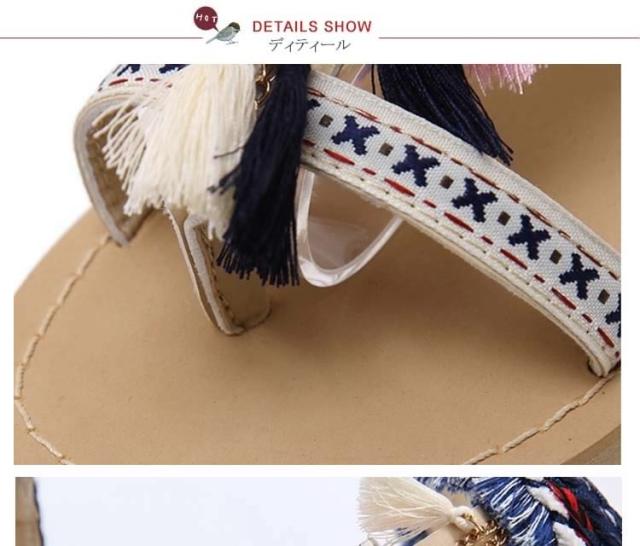 刺繍/サンダル/フリンジサンダル/レディース/女性用/ミュール/ぺたんこ/ローヒールサンダル/フラットシューズ/靴/婦人靴/ビーチサンダル/タッセル/パーティ