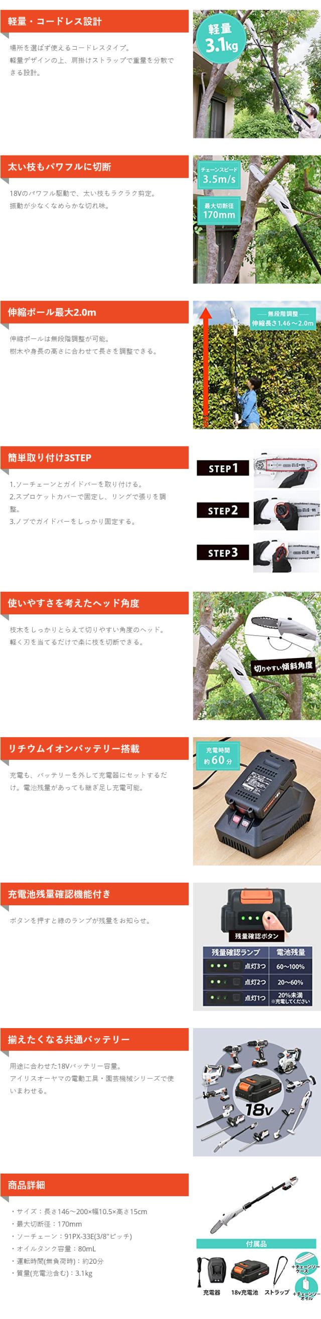 【充電式ポールチェーンソー JPC1518】