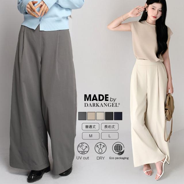 MAX1,500円OFFクーポン!フレアパンツ 速乾 涼しい 涼感 レディース ボトム パンツ ワイド ウエストゴム ポケット きれいめ リラックス 春 夏 秋 オールシーズン M L サイズ 洗濯可 【 タック入りイージーフレアパンツ 】 ダークエンジェル 送料無料 春新作