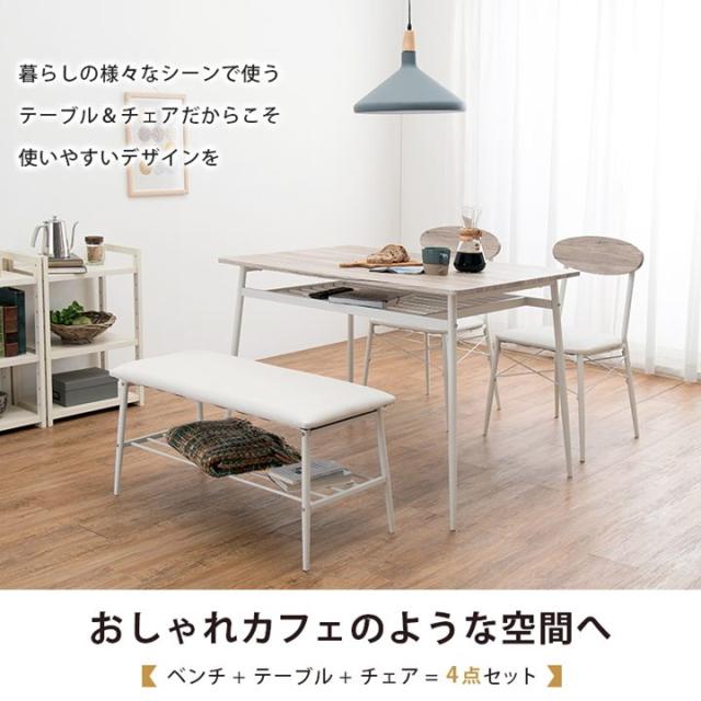 ダイニングテーブルセット 3人〜4人用 幅105cm おしゃれ 木目天板 テーブル チェア2脚 ベンチチェア