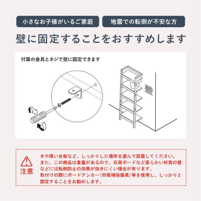※この商品は重量があるので、石膏ボードなど柔らかい材質の壁などには転倒防止の効果が効きにくい場合があります。