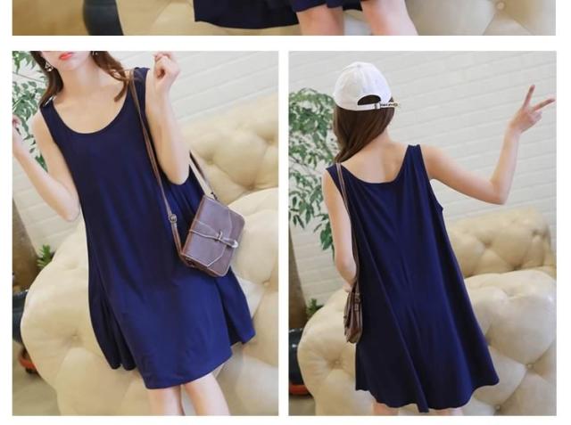 大きいサイズ タンクワンピース マタニティ マタニティウェア 膝丈 ワンピース ノースリーブ ワンピース Aライン クールネック Uネック