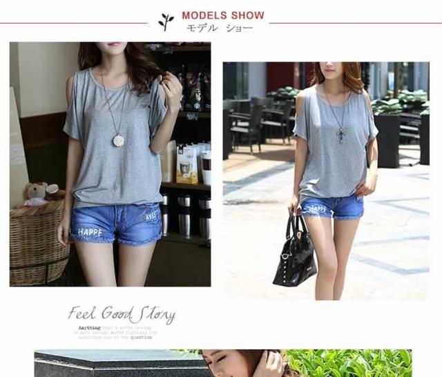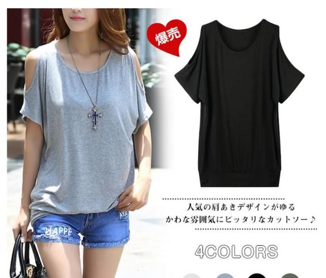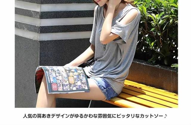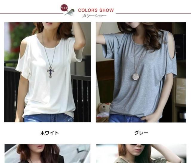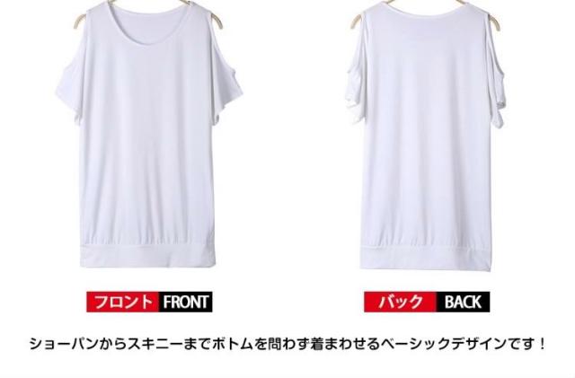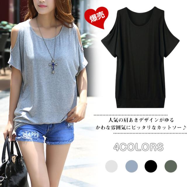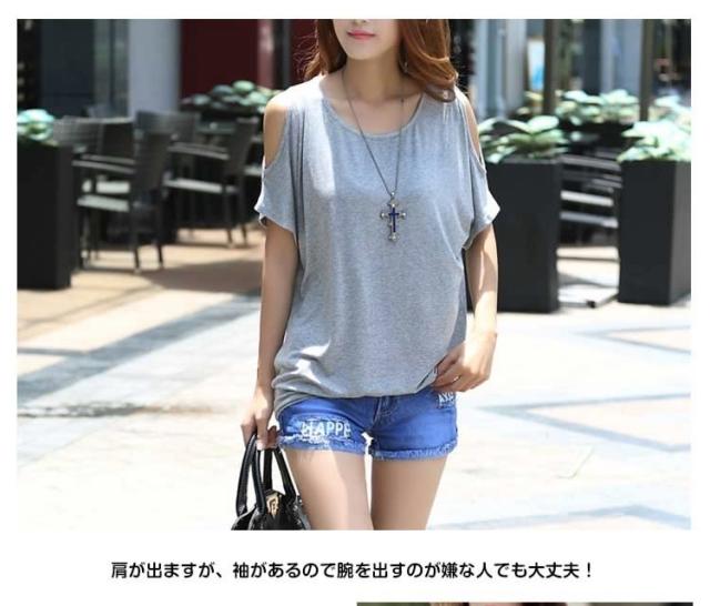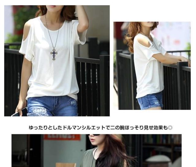 肩開き オープンショルダー ドルマンTシャツ チュニックカットソー 無地 tシャツ 半袖 ドルマンスリーブ ドルマンチュニック 半袖t
