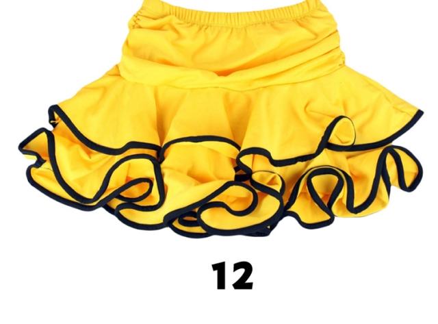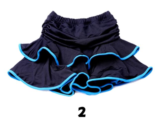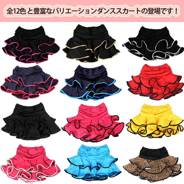 | 全12色 と豊富なバリエーションダンススカートの登場です!バイカラーの映えるパイピングミニスカート斜めにカットされたデザインなので左右の表情が違うアシンメトリーしっかりした生地の2段フリルなので重量は少々重め 社交ダンスやフラメンコにオススメ!豊富なデザインと、リーズナブルな価格帯が魅力です。素材がとても軽く、ストレッチがよく効いるのでレッスンや練習に適しています。 | |