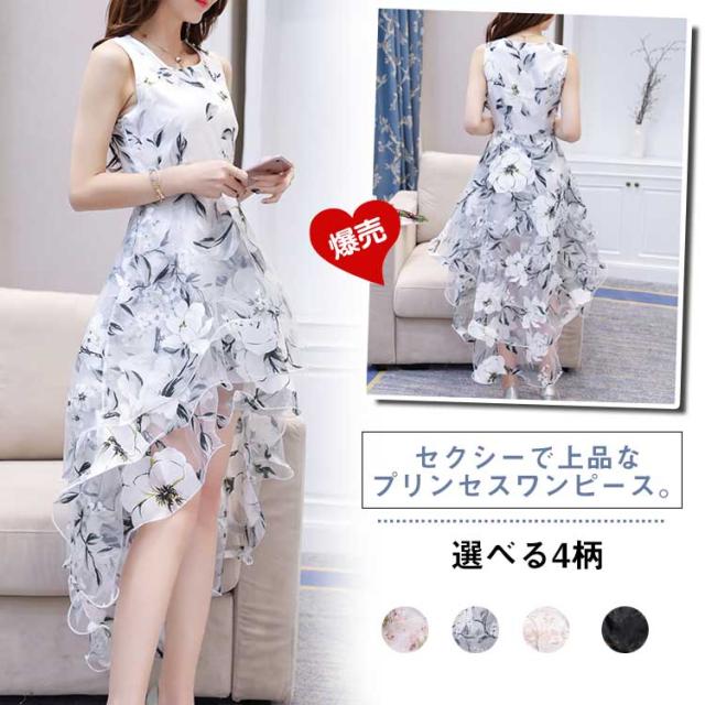 プリンセスドレス パーティードレス オーガンジワンピース 燕尾ワンピース 前短後長ワンピース ワンピースドレス オーガンジワンピース レディース