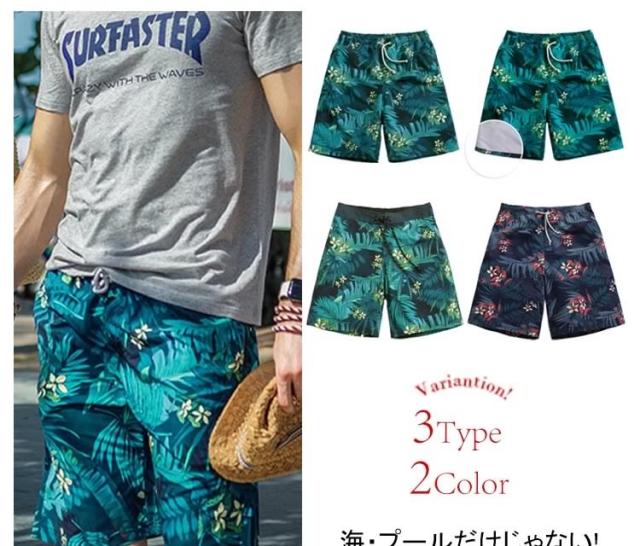 アロハ ビーチショーツ サーフパンツ メンズ 水着 ハーフパンツ 迷彩 花柄 スイムショーツ スイムウェア 海パン スイムパンツ 体型カバー