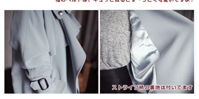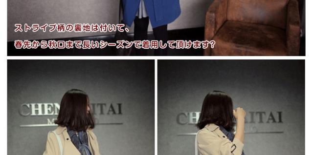 | きれいめさんにもカジュアルさんにも着回しがきくAラインスプリングトレンチコート☆一見ゆったりオーバーサイズながらウエストのベルトをプラスして瞬間的に細身効果を演出できます!スキニーと合わせると、裾広がりのトレンチからのぞくシルエットで足細効果まで得られちゃうのが嬉しいです。ストライプ柄の裏地は付いて、春先から秋口まで長いシーズンで着用して頂けます? | |