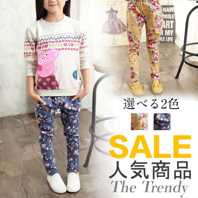 送料無料長パンツ ロングパンツ 花柄 プリント 小花柄 子供服 女児 子供パンツ チノパンツ クライミングパンツ カジュアルパンツ ボトム