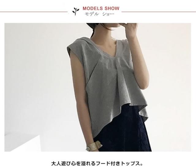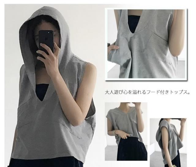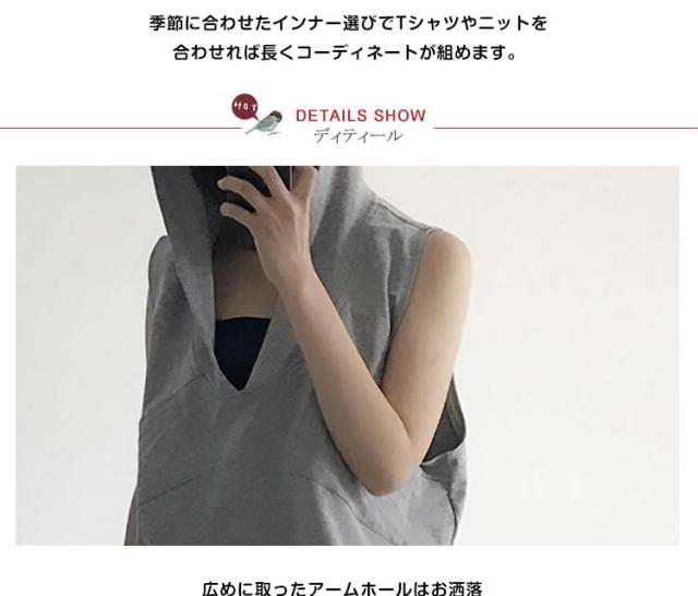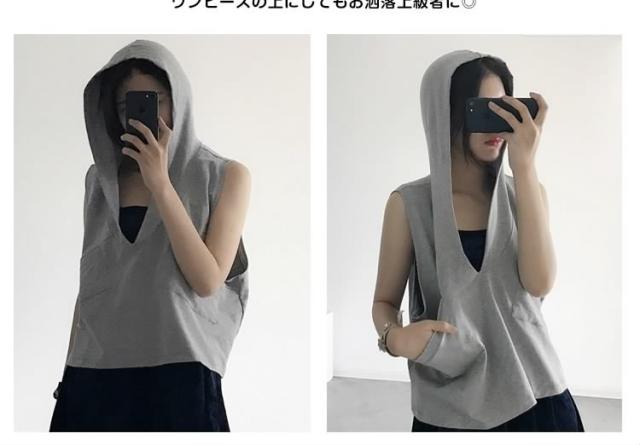 ゆったりタンクトップ フード付き 袖なし お洒落 ファッション カジュアル 衣装