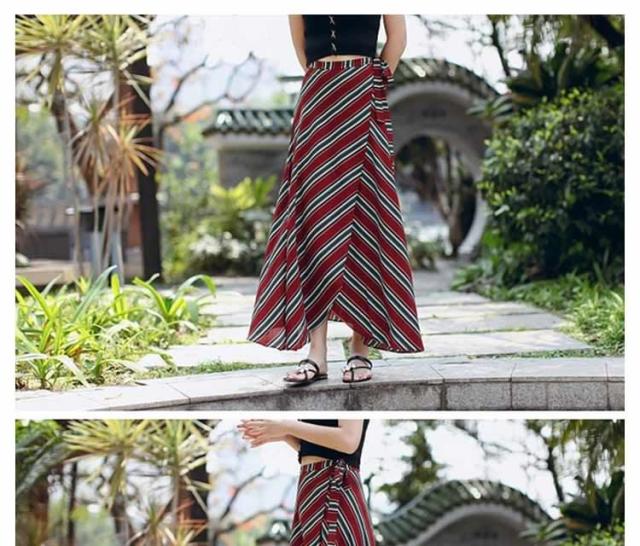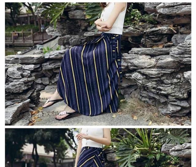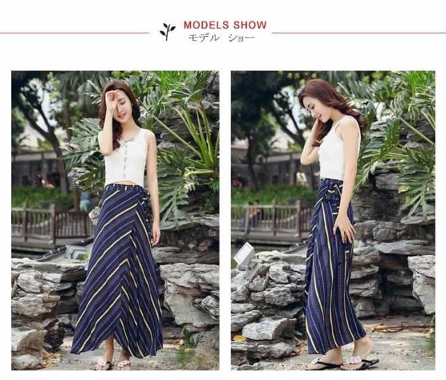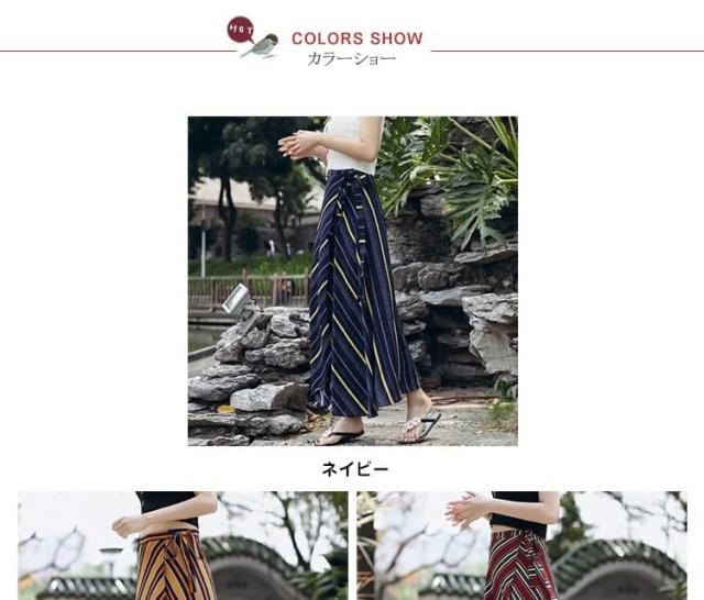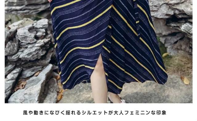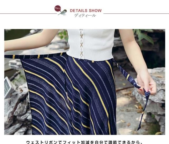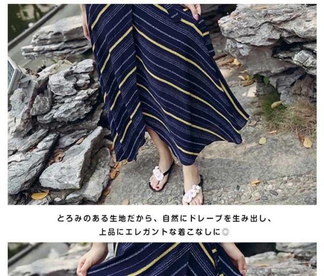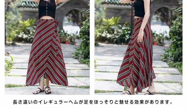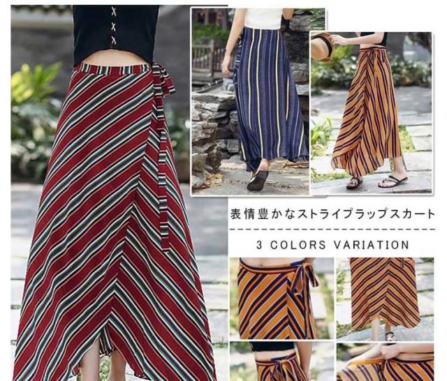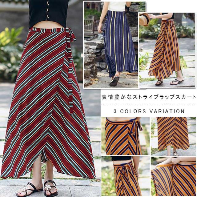 表情豊かなストライプスカート ラップスカート ボーダー柄 巻きスカート レディース ロングスカート マキシスカート とろみ ドレープ エ