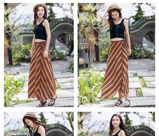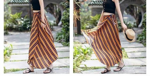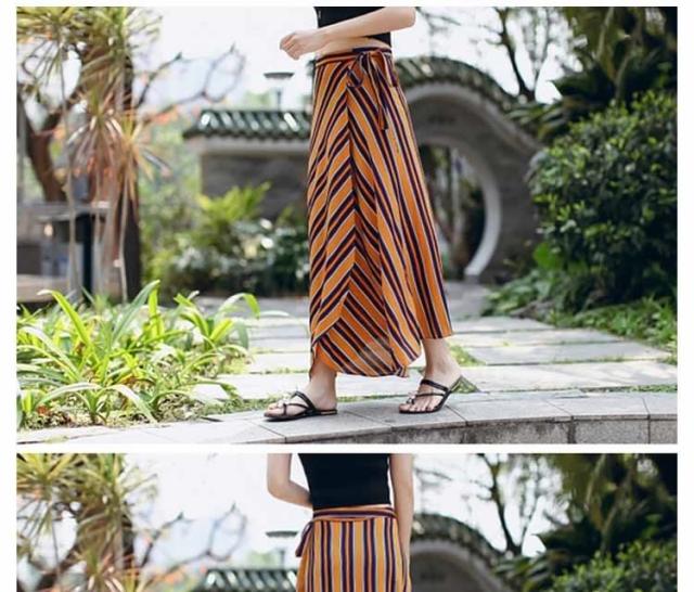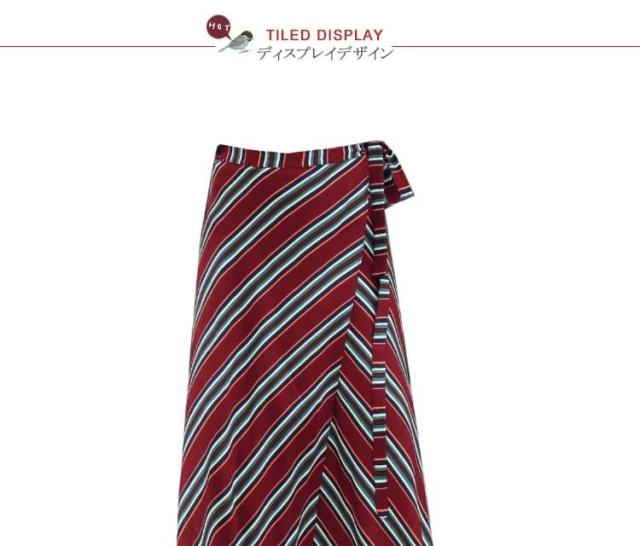 | 表情豊かなストライプラップスカート。今季トレンドのラップスカートあお洒落上級者のマストアイテム一度穿くとくせになるエアリーな穿き心地空気をはらみ揺らめくジョーゼットは暑い季節にピッタリ、ストンと落ちるシルエットがエレガントな印象長さ違いのイレギュラーヘムが足をほっそりと魅せる効果があります。デイリー使いや、通勤、レジャーなど様々な場合あうから重宝します。 | |