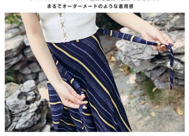 ラップスカート Aライン アシメ ボーダー リボン 流行 巻きスカート