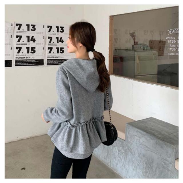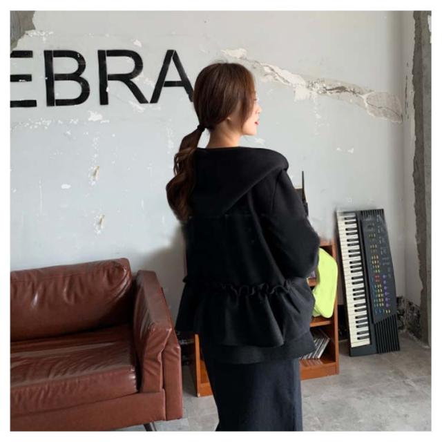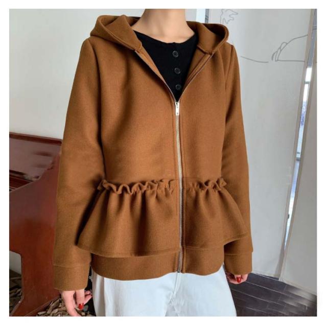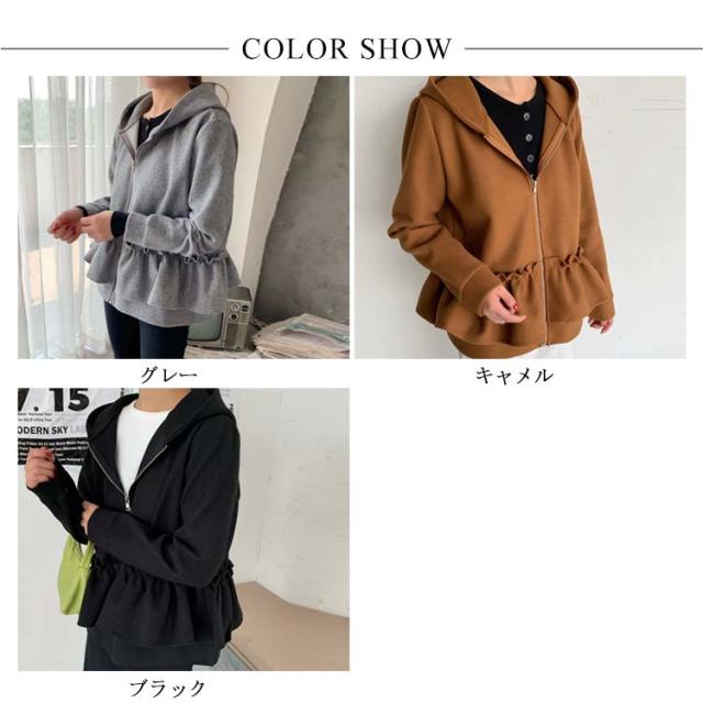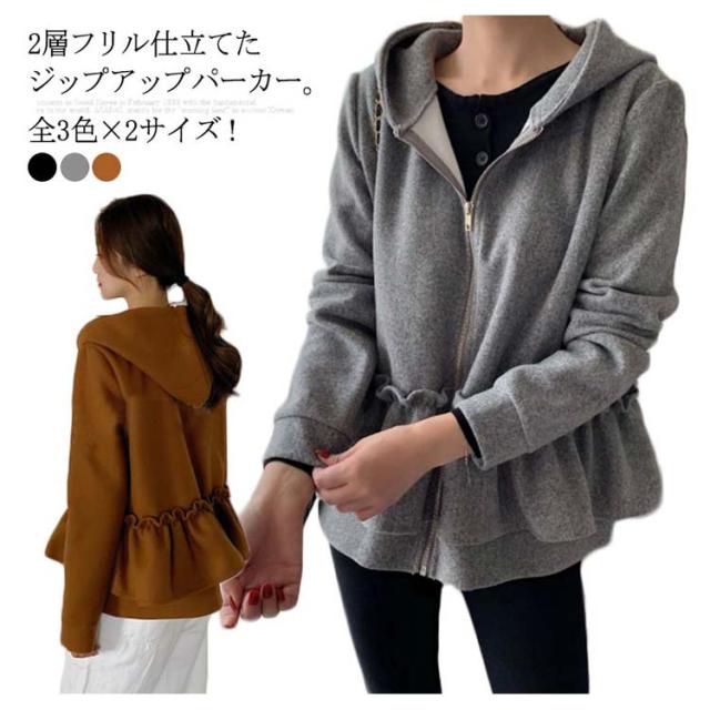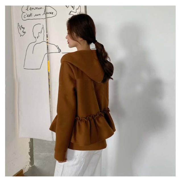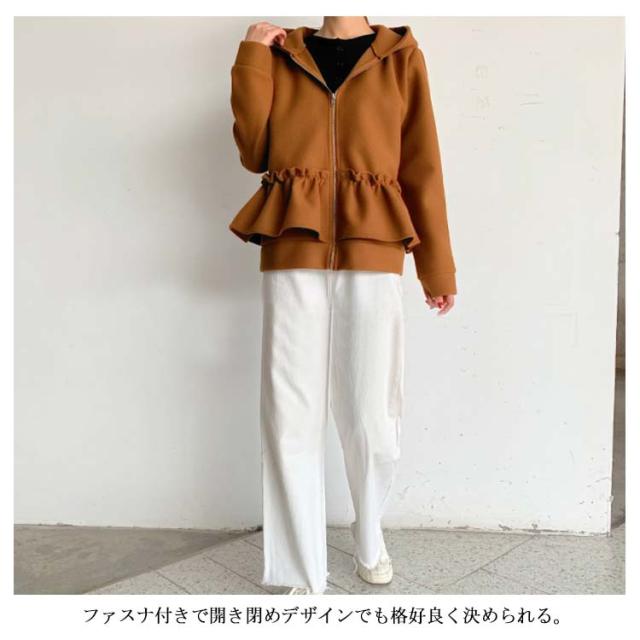 全3色×2サイズ!フリルジャケット レディース ショートコート ショートジャケット パーカー ジップアップ フード付き フリル 大人可愛い 秋冬 冬物