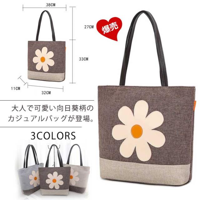 大きめ向日葵柄が大人可愛い。バッグ トートバッグ 綿麻 コットンリネン キャンバストートバッグ レディースバッグ トート ショル