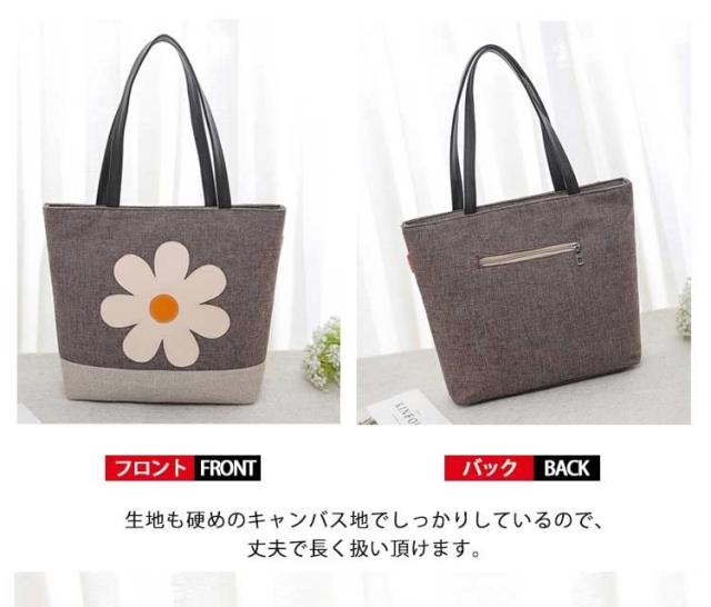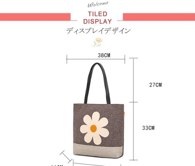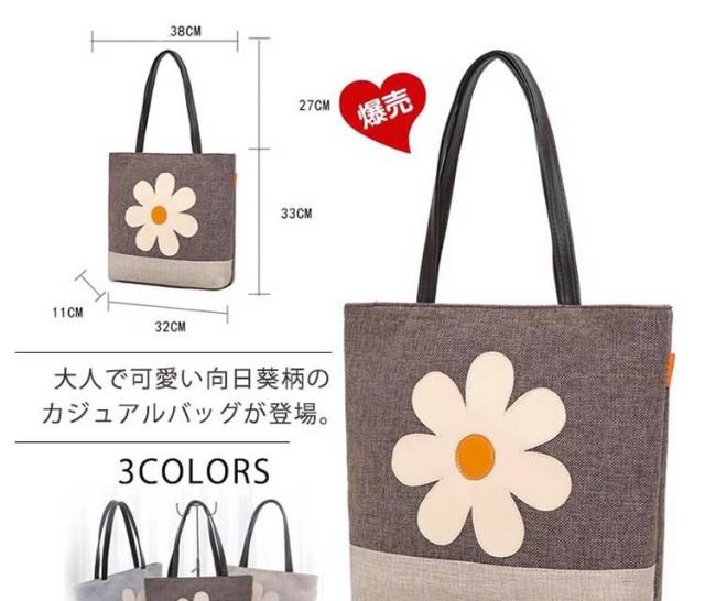 | 大人で可愛い向日葵柄のカジュアルバッグが登場。季節問わず合わせられるのも嬉しい魅力。傘やIPADなどの物が楽々入るので普段の通勤・通学にもおすすめの多機能トート!生地も硬めのキャンバス地でしっかりしているので、丈夫で長く扱い頂けます。ちょっとしたお買い物や、お出掛けまで幅広く活躍してくれるバッグです。 | |