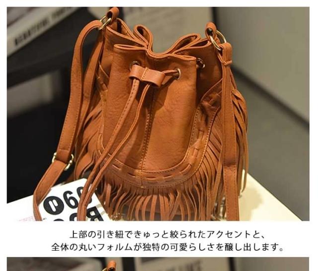 フリンジが可愛い巾着バッグ!フリンジバッグ ショルダーバッグ バッグ ショルダー フェイクレザー 巾着 バッグ 斜めがけ 肩掛け