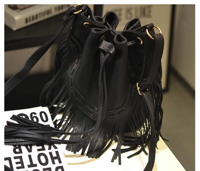 フリンジ巾着 カジュアル ショルダーバッグ 鞄 フリンジバッグ