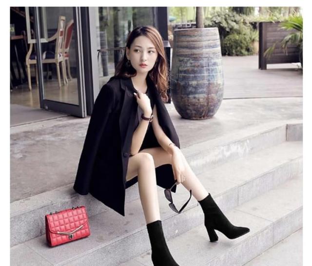 ミドルブーツ チャンキーヒール ショートブーツ ストレッチ レディース サイドゴアブーツ ハイヒール ヒールブーツ ショート丈