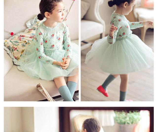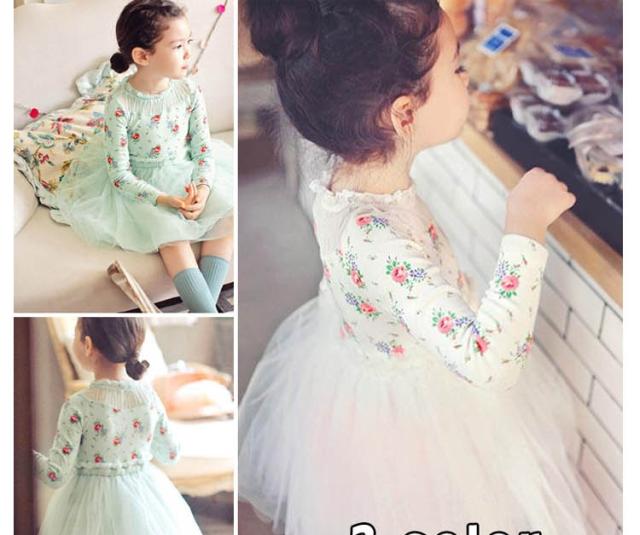 韓国子供服 ワンピース 姫様 Aライン フレア 長袖ワンピース
