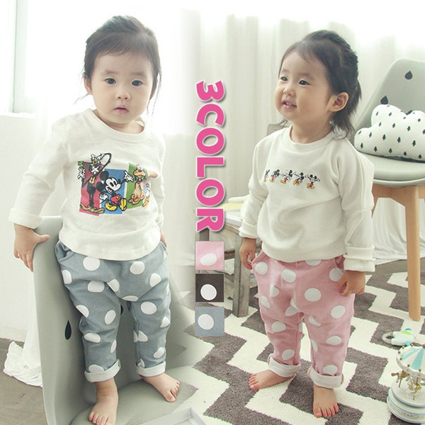 送料無料子供ボトム ハロンズボン パンツ 長パンツ サルエル ゆるズボン 長ズボン ドット柄 新作 カジュアル 秋 シンプル