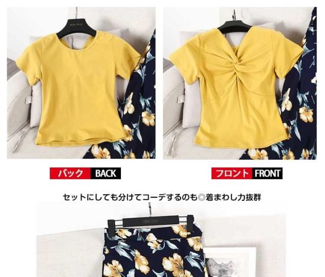 上下セット Tシャツ×スカート2点セット ロングスカート ミモレ丈 花柄 リゾート ビーチ 旅行 レディース カジュアル 半袖Tシャツ 夏新