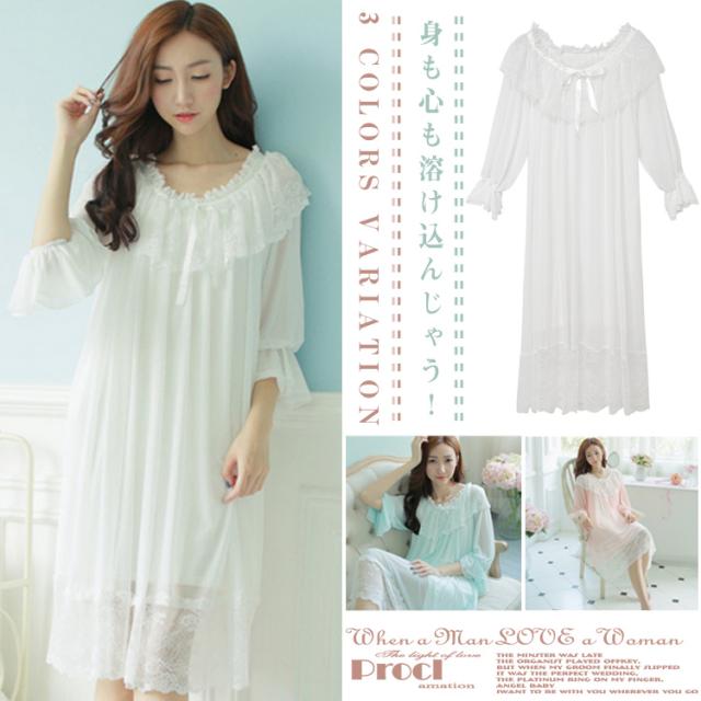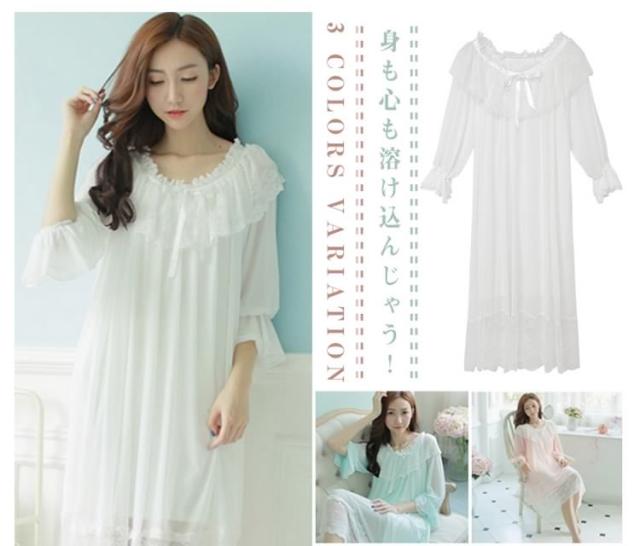パジャマワンピース ロリータ お姫様 レース レディース パジャマ ルームウェア ナイトウェア 肌着 部屋着 ゴージャス 華やか ミモレワン