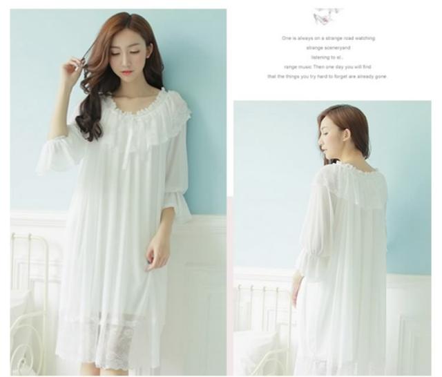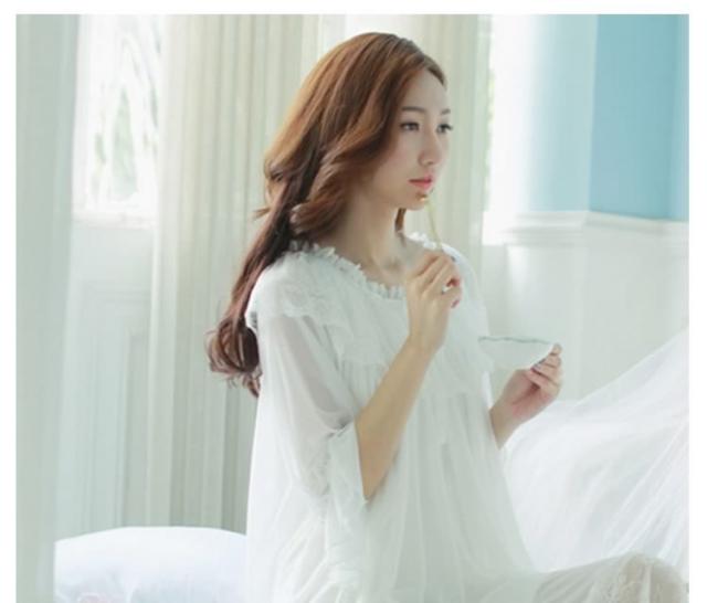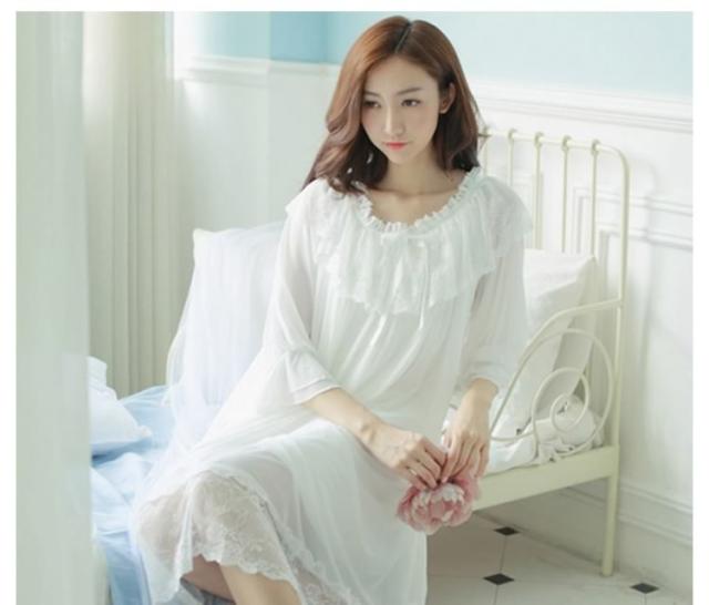 華やかなお姫パジャマワンピース 柔らかい スベスベ お洒落 パジャマ 大人 7分袖 春秋