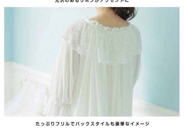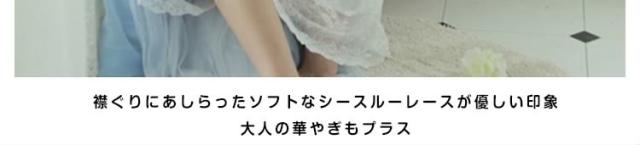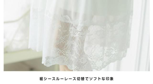 | 身も心も溶け込んじゃう!贅沢ほどたっぷりの生地を取り入れて、波打つようなフレアシルエットが魅力!襟ぐりにあしらったソフトなシースルーレースが優しい印象大人の華やぎもプラスコットン地エアリーなチュールを添えて、風や動きになびく揺れるシルエットがフェミニンな印象 | |