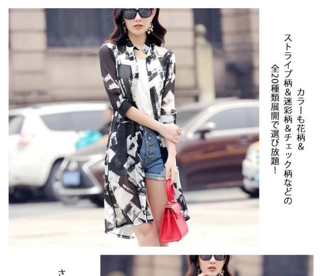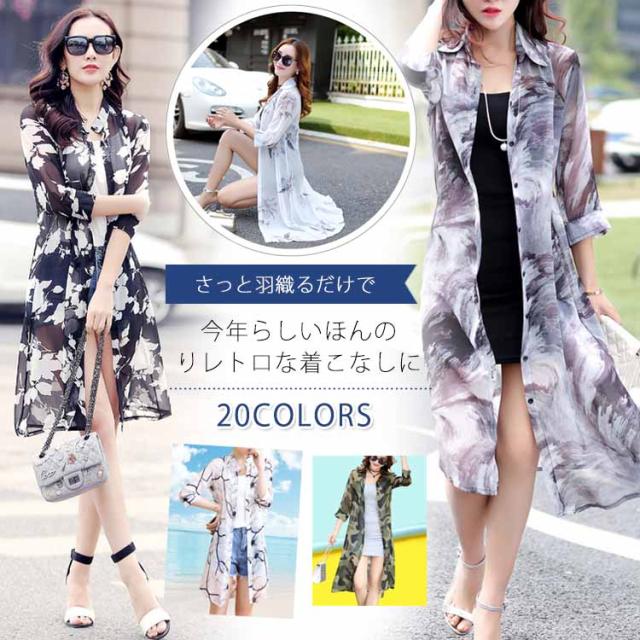 春夏の定番item!ロングカーディガン 花柄 ストライプ柄 迷彩柄 チェック柄 シフォン カーディガン サマーカーディガン ロング丈 UVカ