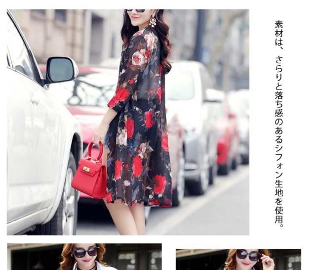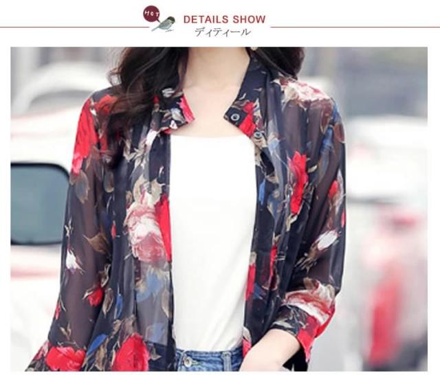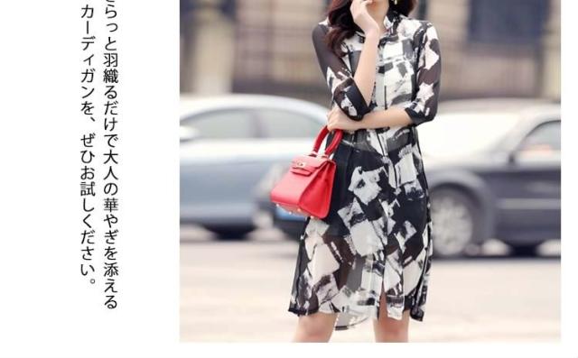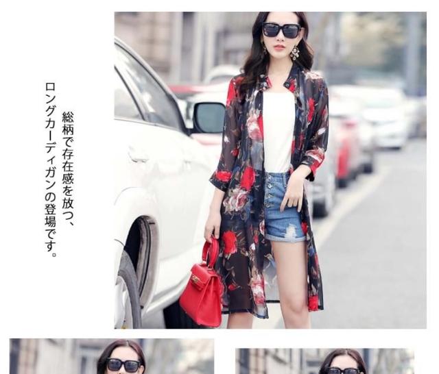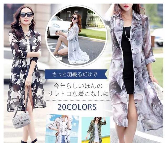 シフォンロングカーディガン 総柄 プリント カーディガン 日焼け防止 夏 レディース ロング丈