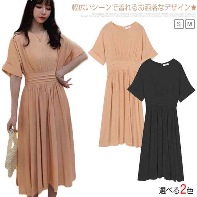 送料無料 ワンピース レディース ロングワンピース マキシ丈ワンピース 半袖ワンピース Vネック フレア裾 Aライン ラウンドネ