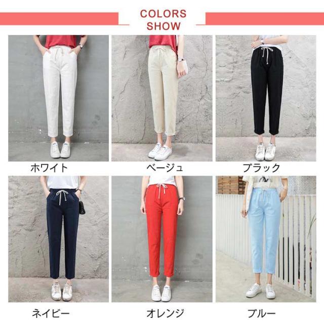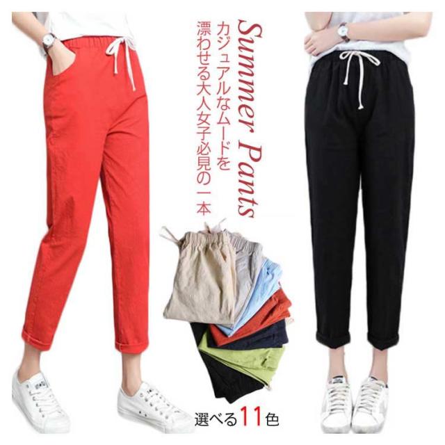 9分丈 綿麻パンツ リネンパンツ レディース 綿麻 サルエルパンツ テーパードパンツ アンクルパンツ ロングパンツ リラックスパ
