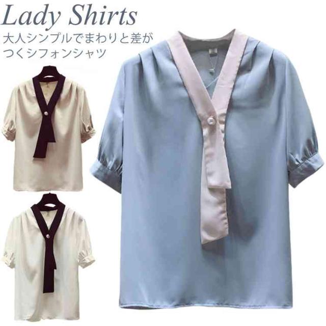 シフォン シャツ シフォンブラウス 長袖 シャツ ブラウス レディース Vネック シャツ ブラウス シフォンブラウス OL 通勤 フェミニン オフィス