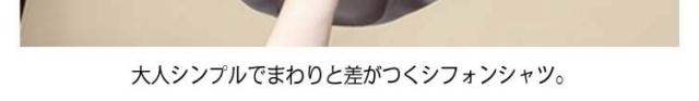 | 大人シンプルでまわりと差がつくシフォンシャツ。とろみのあるシフォンを使用しているので、程よい落ち感があり上品な印象です!タイトスカートやワイドパンツに上品に合わせたり、裾をインした旬なスタイリングもおすすめ!この上なくイイ女オーラ満開間違いナシの万能シャツ。 | |