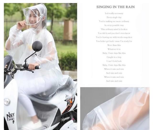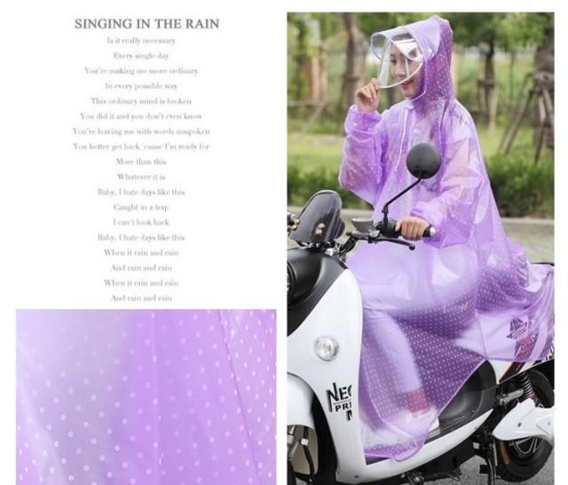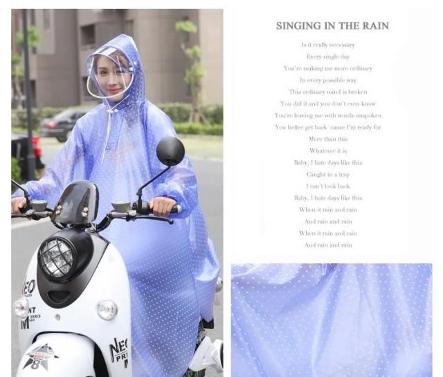 | 雨の日も自転車に乗りたい方へオススメのレインポンチョ。柔らかくて通気性に優れた素材で快適な着心地!突然の雨でも安心!さっと着れる!さっと脱げる!携帯にも便利! | |