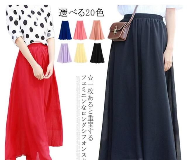 シフォン フレアスカート ロング丈 シフォンスカート マキシスカート レディース ロングスカート ハイウェスト スカート 春 夏