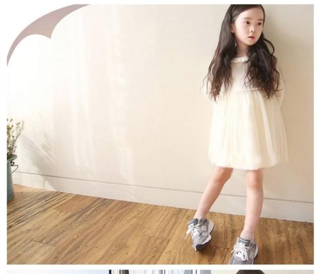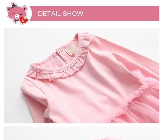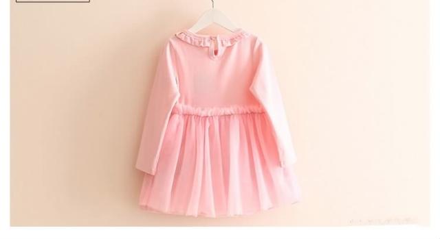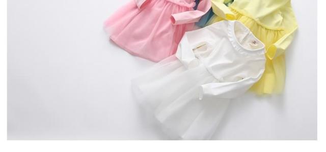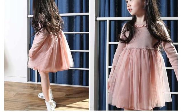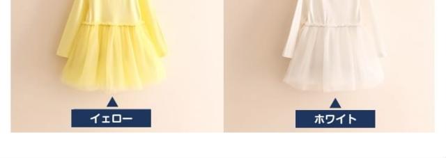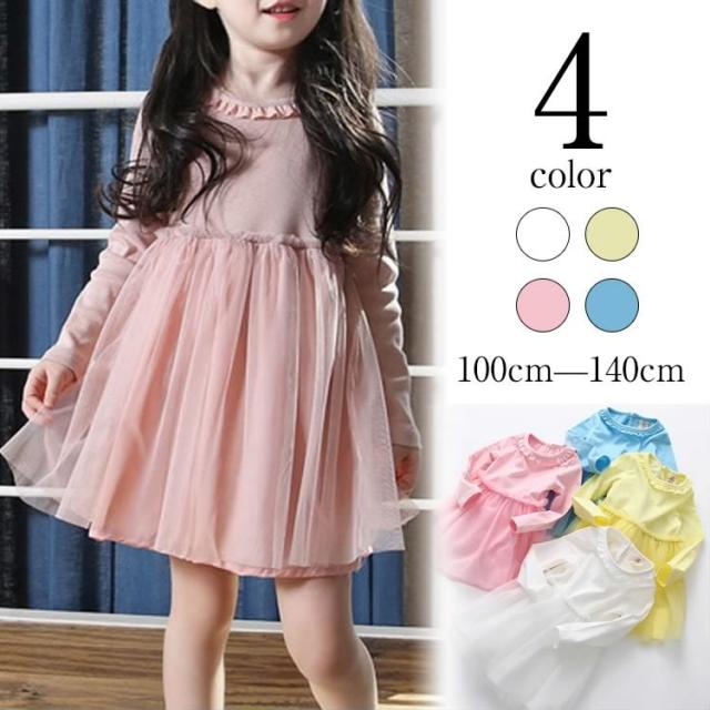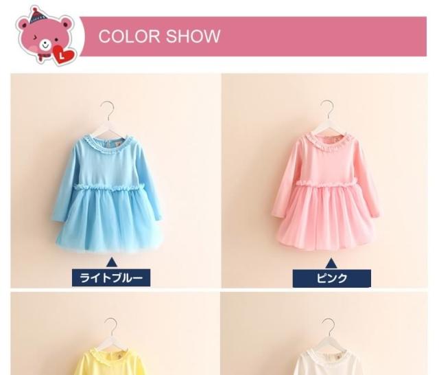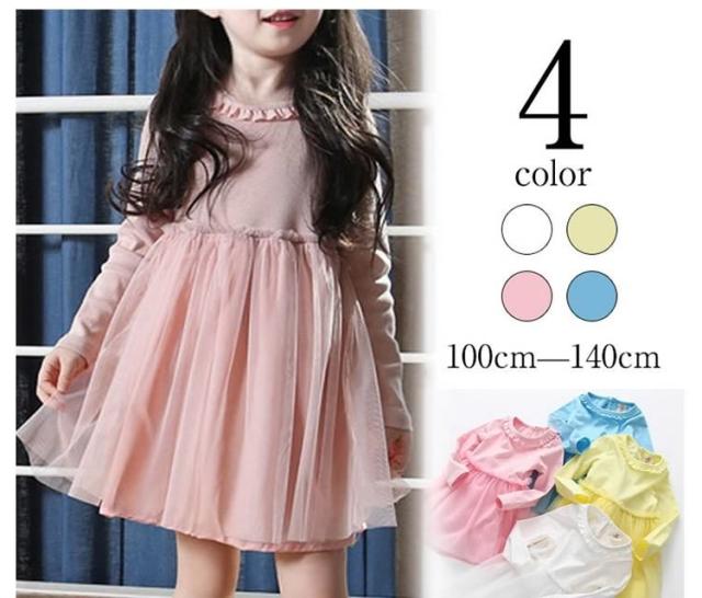 送料無料ワンピース 長袖 クルーネック レースコットン切替 ショート丈 チュニックワンピース 無地 子供服 プルオーバー キッズ お姫様