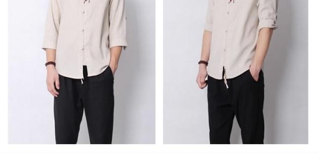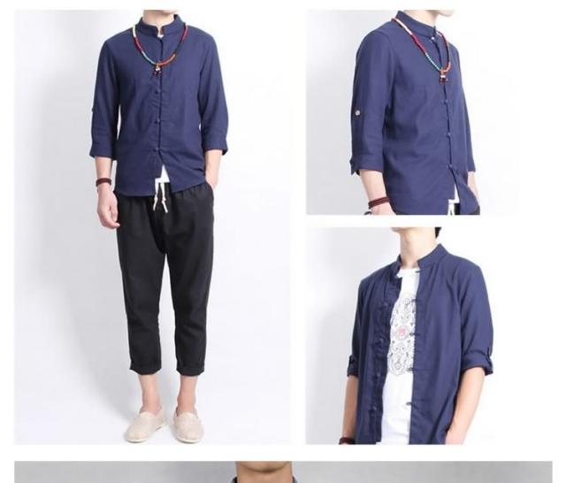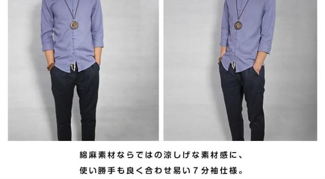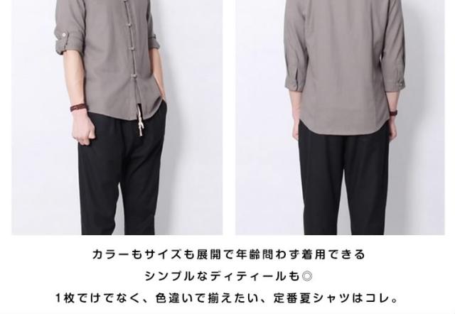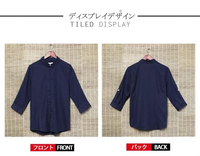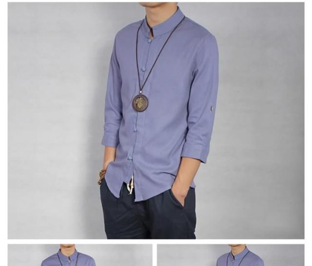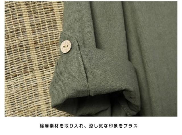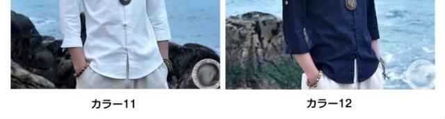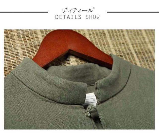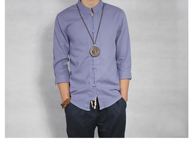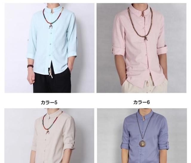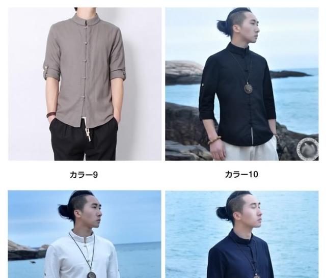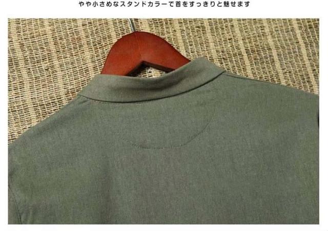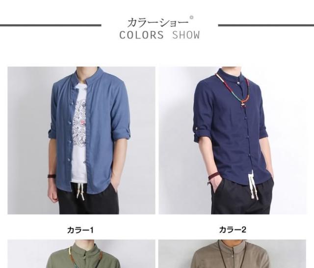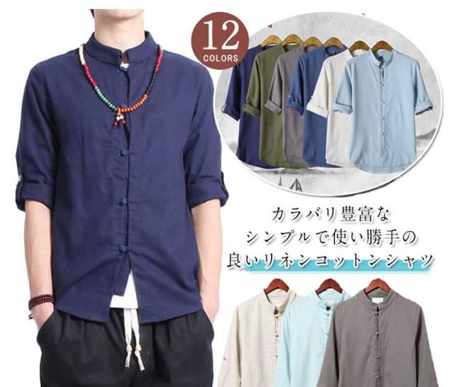 送料無料シャツ メンズシャツ 綿麻 リネンシャツ 7分袖 チャイナ風 アジアン風 無地 立ち襟 麻シャツ 綿麻 七分袖 ZOKO