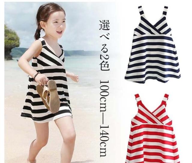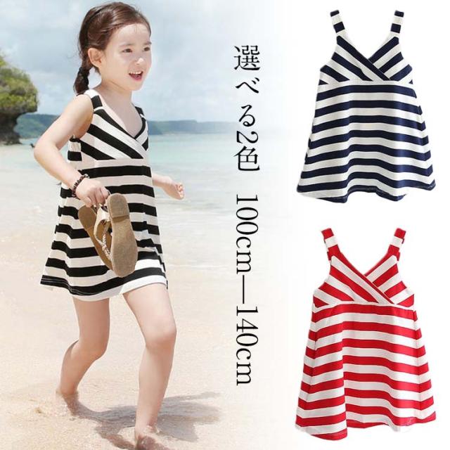 送料無料ボーダー柄 ワンピース キャミソールワンピース 女の子 ワンピース 子供ワンピース キッズ 子供 セーラー風 子供服 海軍風