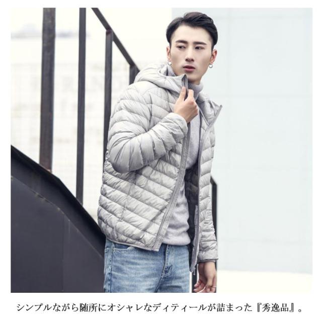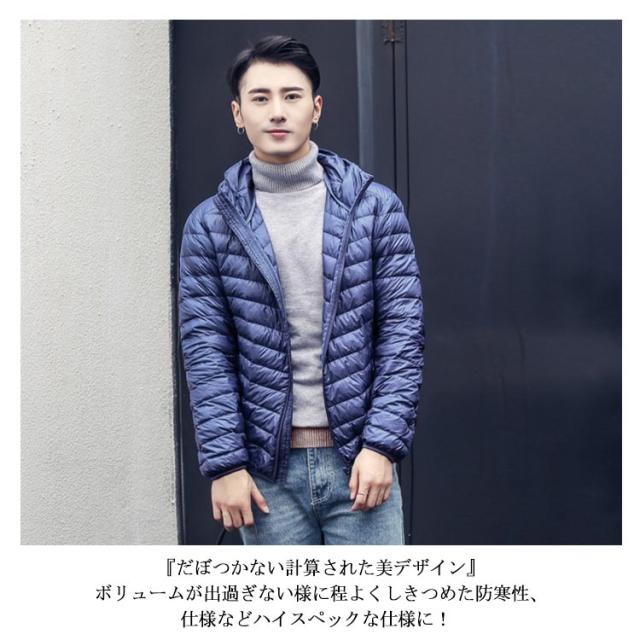 メンズ ダウンジャケット ダウン ライトダウン アウター フード付き 薄型 カジュアル メンズファッション