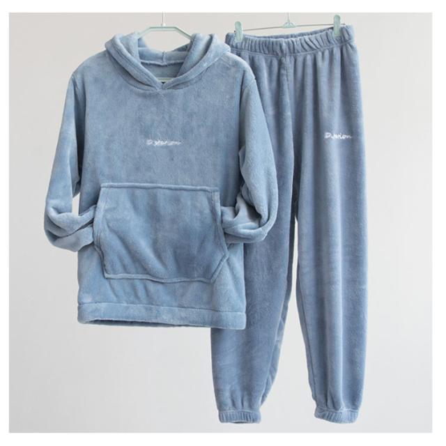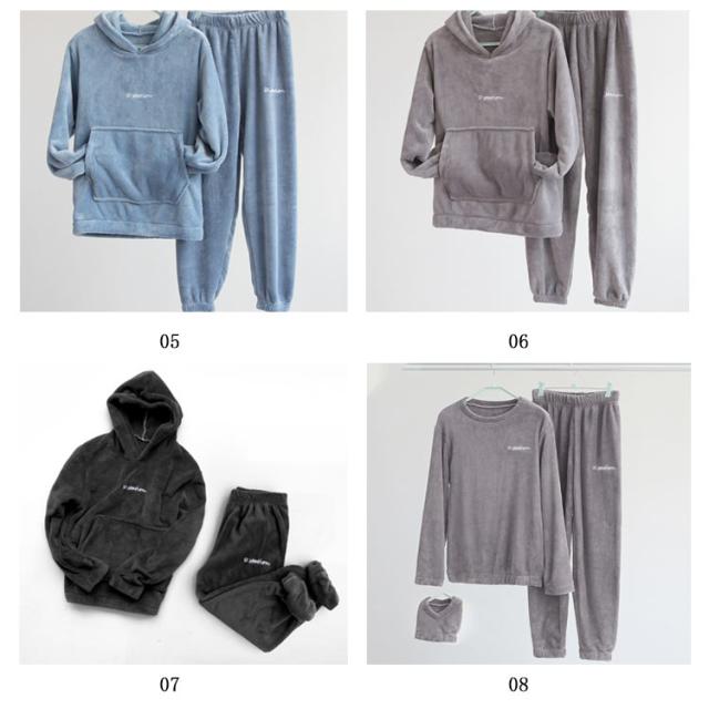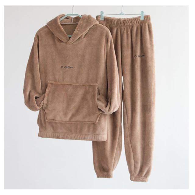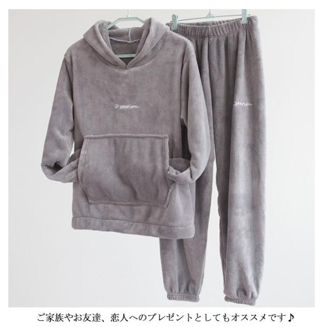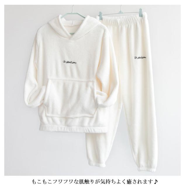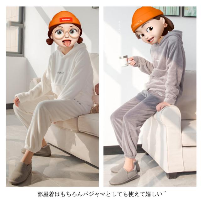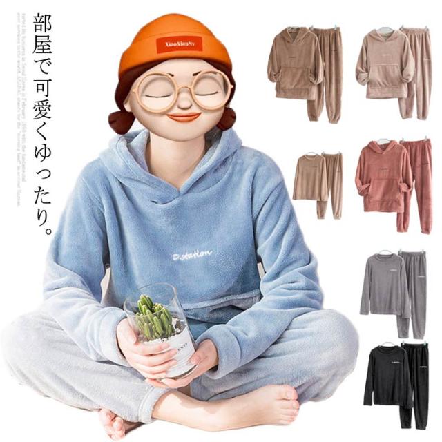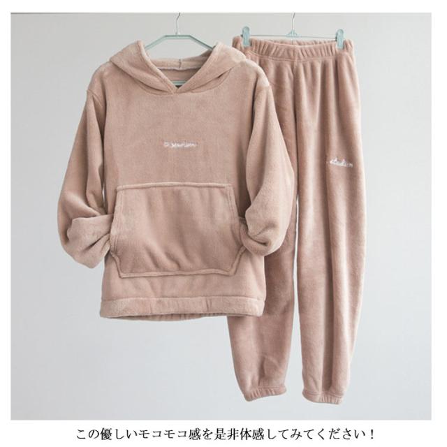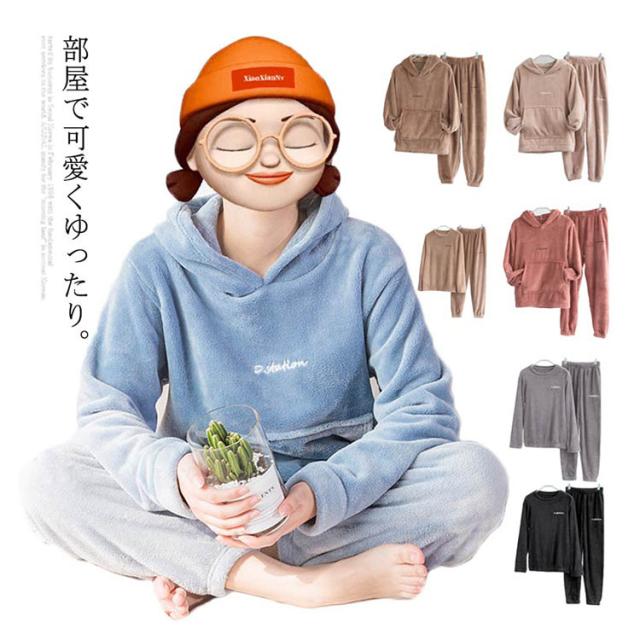 2アイテム ルームウェア もこもこ 上下セット モコモコ ルームウエア パジャマ レディース 可愛い フード付パジャマ 長袖 部屋着 裏起毛 ふわもこ 防寒着 前ポケット セットアップ 寒さ対策 無地