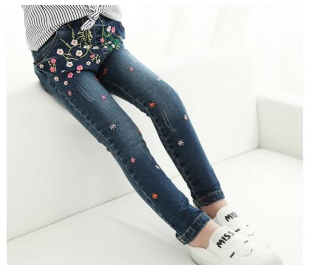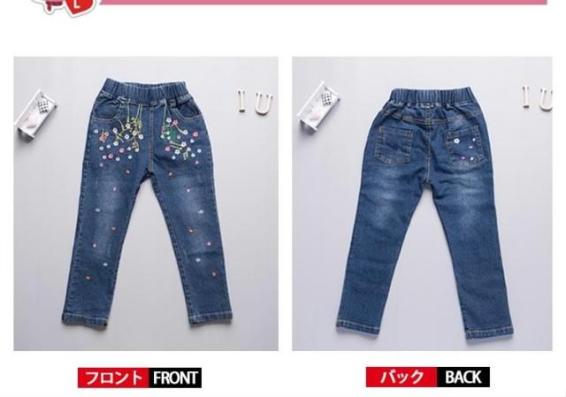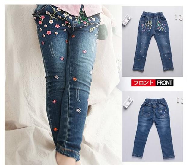 花柄 刺繍 デニムパンツ ジーンズ スキニーパンツ 女の子 子供 キッズ ジュニア デニム パンツ ロングパンツ 子供服