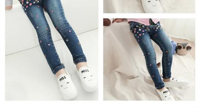 花柄 刺繍 デニムパンツ ジーンズ スキニーパンツ 女の子