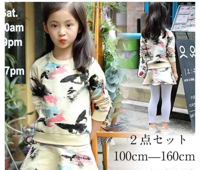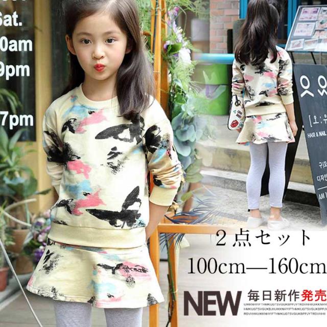 長袖トップス+レギンス付きスカート 2点セット セットアップ 女の子 子供 子供服 長袖 上下セット 発表会 入園式 卒園式 卒業式 お受験