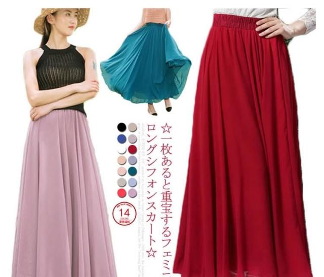 シフォンスカート マキシ丈 ミモレ丈 マキシスカート シフォン スカート レディース シフォン フレアスカート ロング丈 ロング